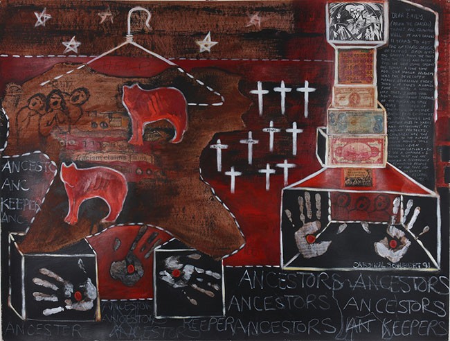 On this day, the AFA is pleased to feature Ancestors (Keepers), 1991, by Dr. Joane Cardinal-Schubert.