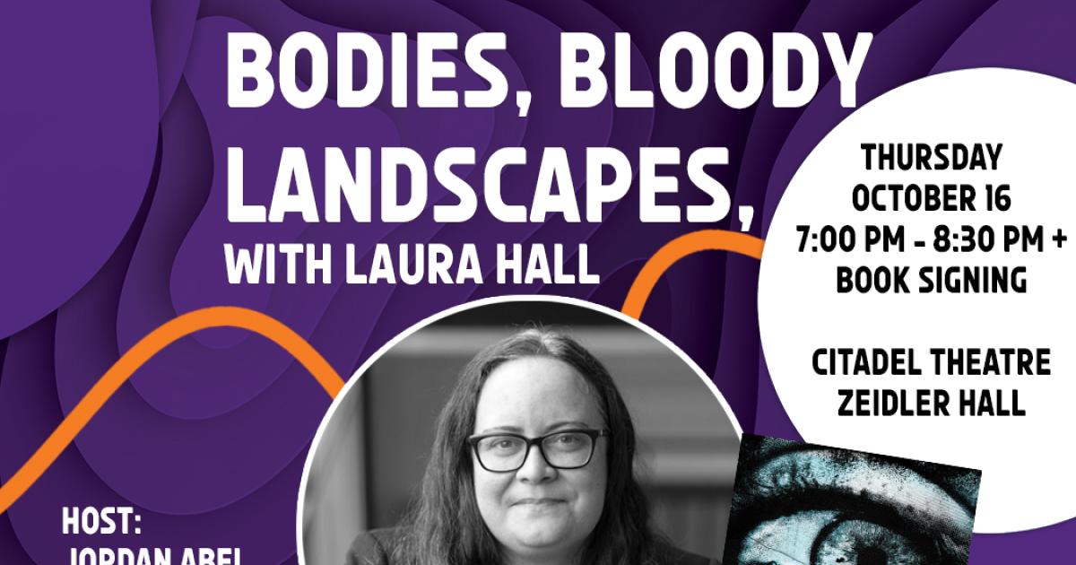 In Conversation event featuring Laura Hall speaking with University of Alberta associate professor Jordan Abel about her book Bloodied Bodies, Bloody Landscapes: Settler Colonialism in Horror.