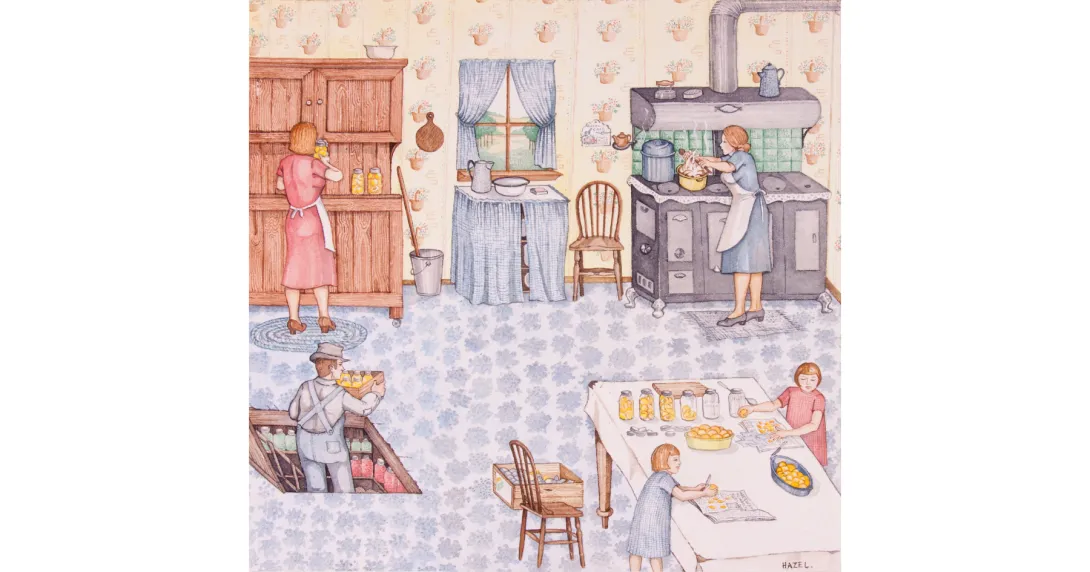 Hazel Litzgus continues to captivate the hearts of Albertans with her charming and nostalgic folk images of early Alberta life. Born on a farm near Lloydminister, Alberta, Hazel, through her paintings give us a glimpse of her early childhood and her many recollections of early rural and small town life on the Alberta Prairies.