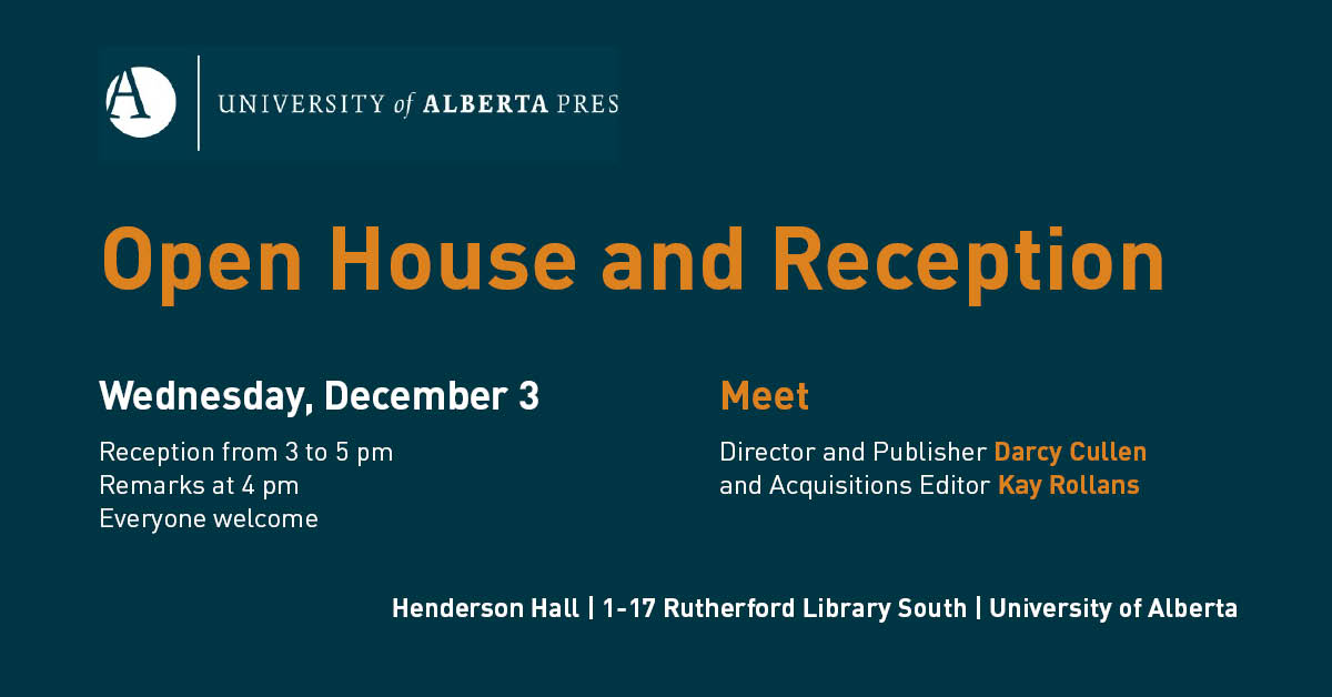 University of Alberta Press is holding an open house and reception to welcome Director and Publisher Darcy Cullen and Acquisitions Editor Kay Rollans.