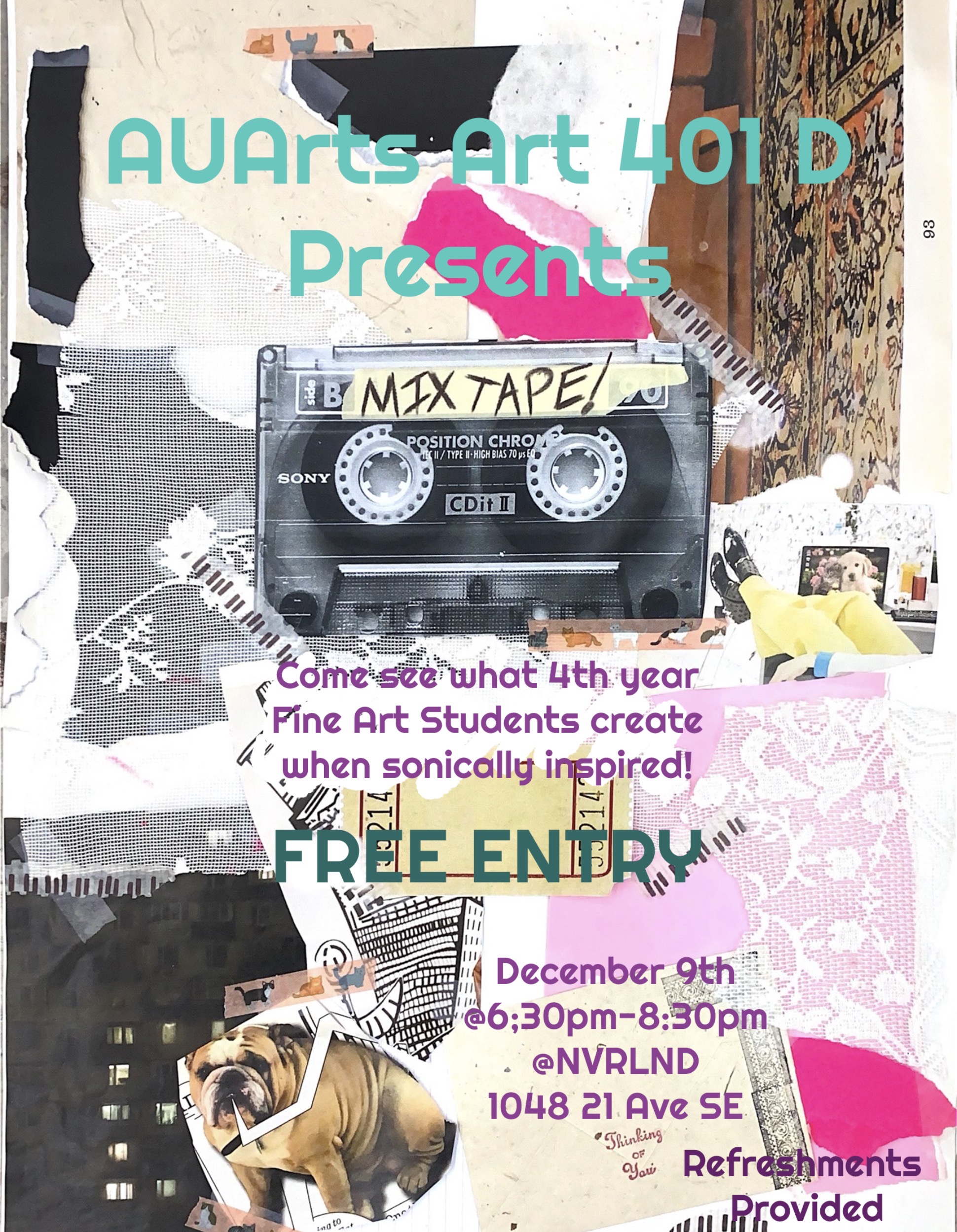 AUArts ARTS401D proudly presents Mixtape — an eclectic showcase of sonically inspired, interdisciplinary, and multimedia works by fourth-year art students. Like its name suggests, Mixtape blends distinct artistic voices into a single immersive experience, exploring the rhythms, textures, and narratives that shape our visual and auditory worlds.