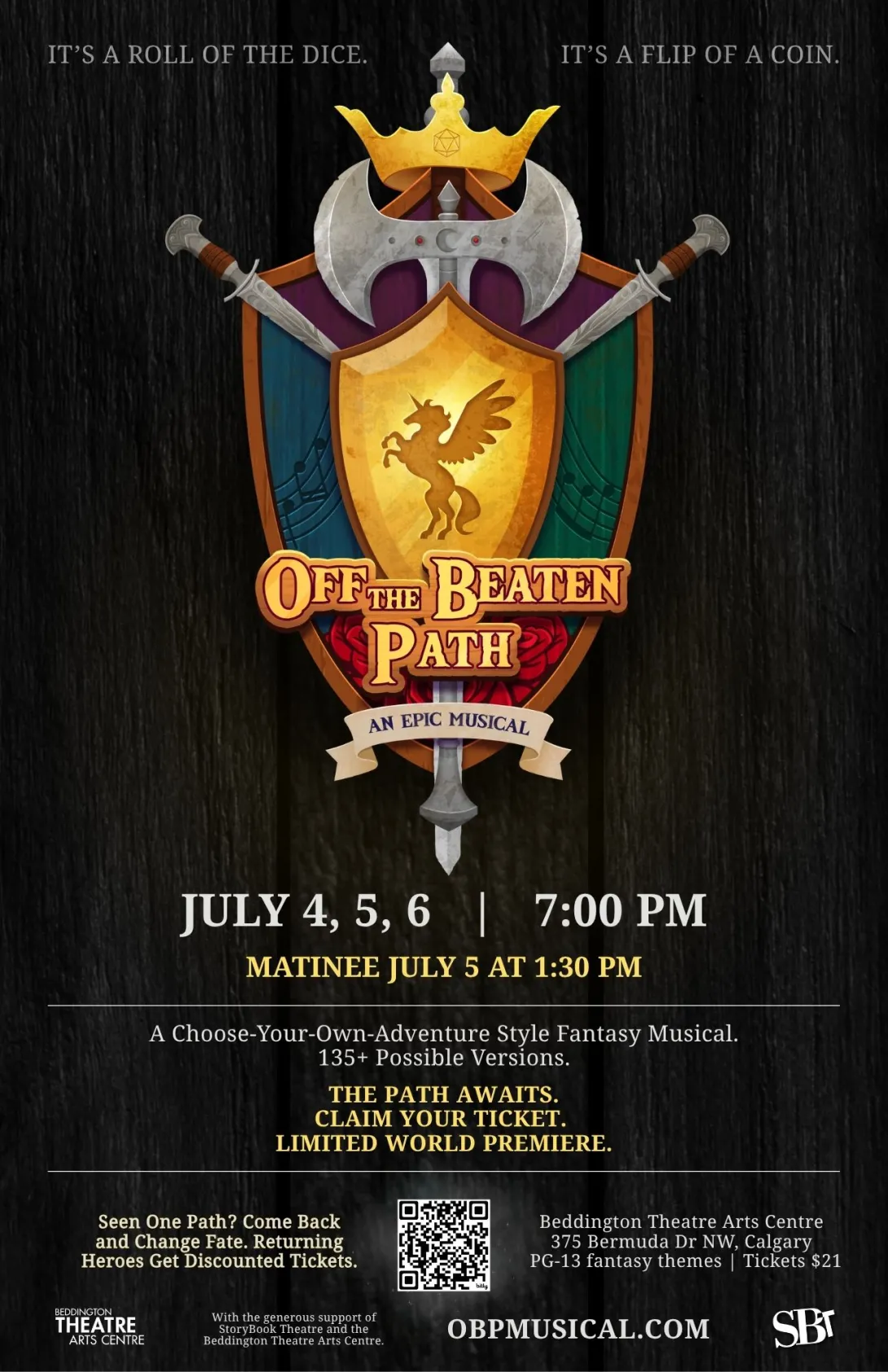 Off the Beaten Path is a hilarious, heart-pounding, interactive fantasy musical where you decide what happens next. Will the rogue betray the party? Can the orcs dance their way to redemption? Is that sword fight going to end in glory or disaster?