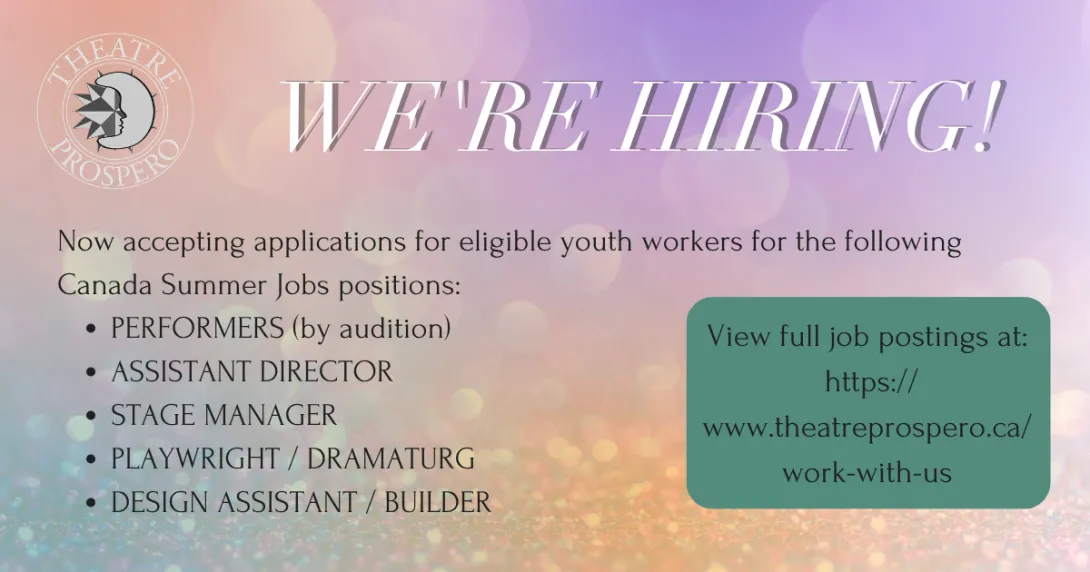 All job postings can be found on our website: https://www.theatreprospero.ca/work-with-us