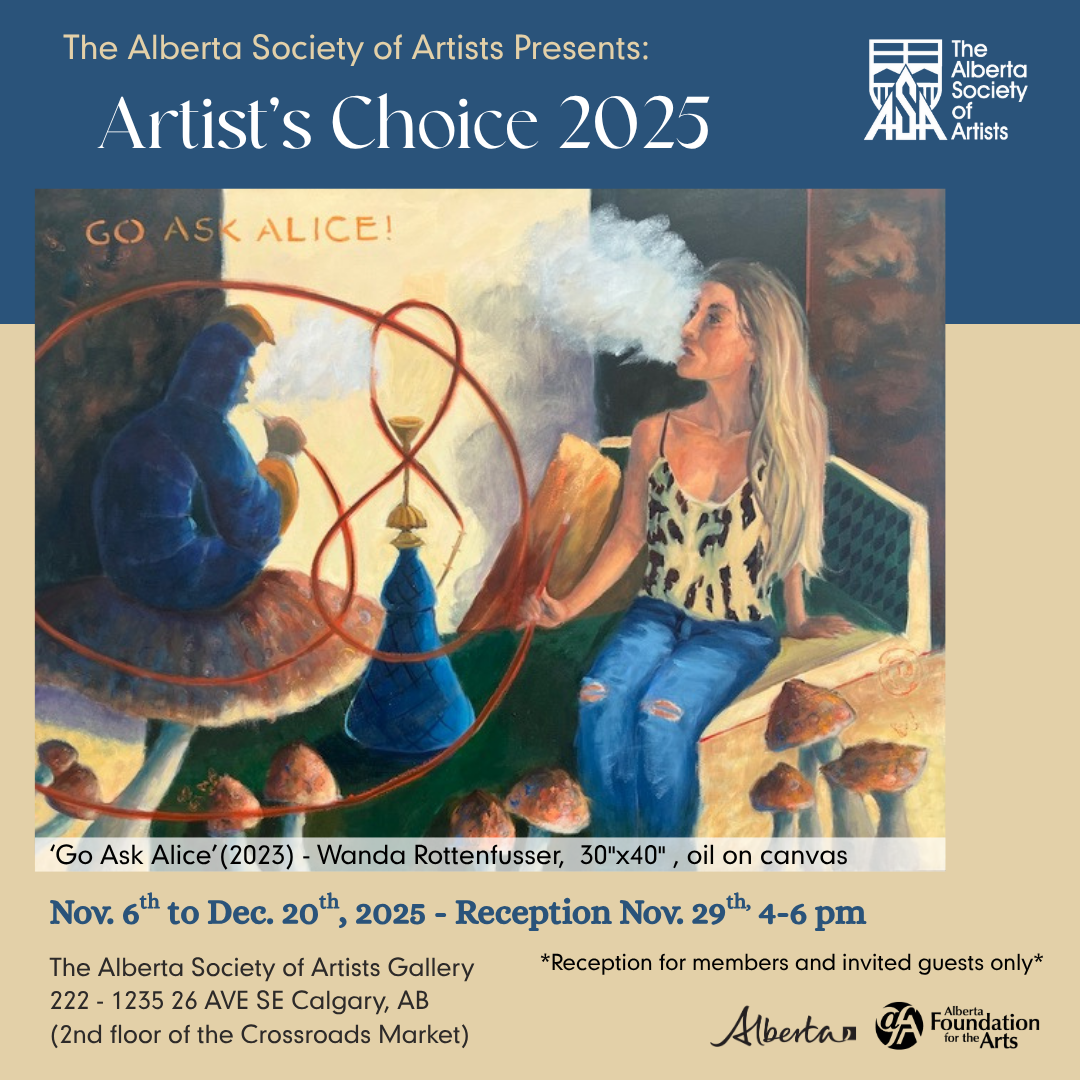 For more information, go to https://www.albertasocietyofartists.com/artists-choice-2025-calgary/ , email coordinator@albertasocietyofartists.com, or call the Gallery at 403-265-0012. The Alberta Society of Artists is the oldest society of juried professional artists in the province, providing art education and exhibitions in public venues since 1931. The Society’s goal is to increase public awareness and appreciation of the visual arts in Alberta.