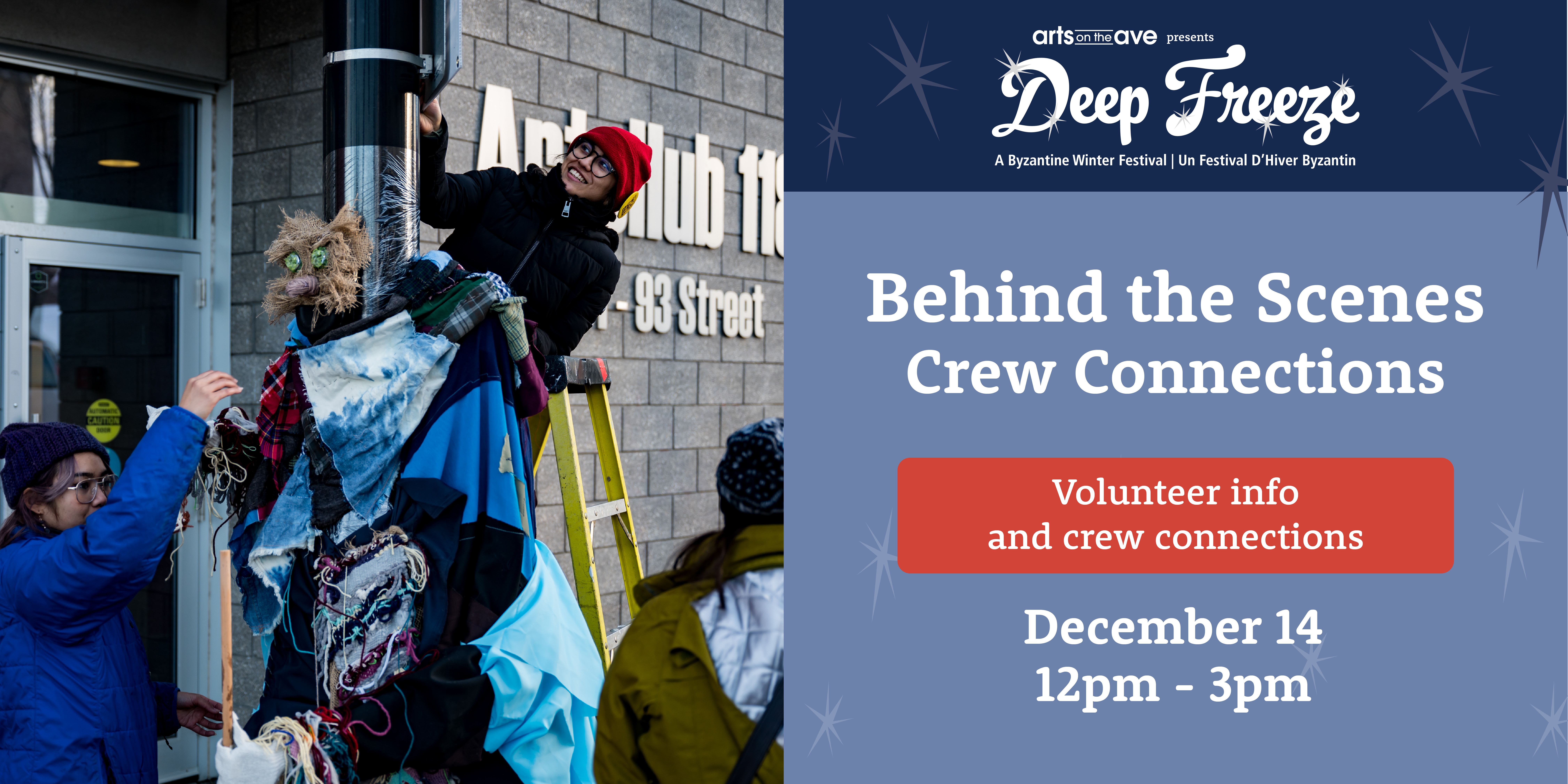Festival Crew Connections is a special evening info session on Sunday, December 14th with two sessions: One at 12:00pm and one at 1:30pm. Sign up for a drop-in gingerbread competition, free hot drinks and snacks, and meet crew leads to learn more about Deep Freeze: A Byzantine Winter Festival!