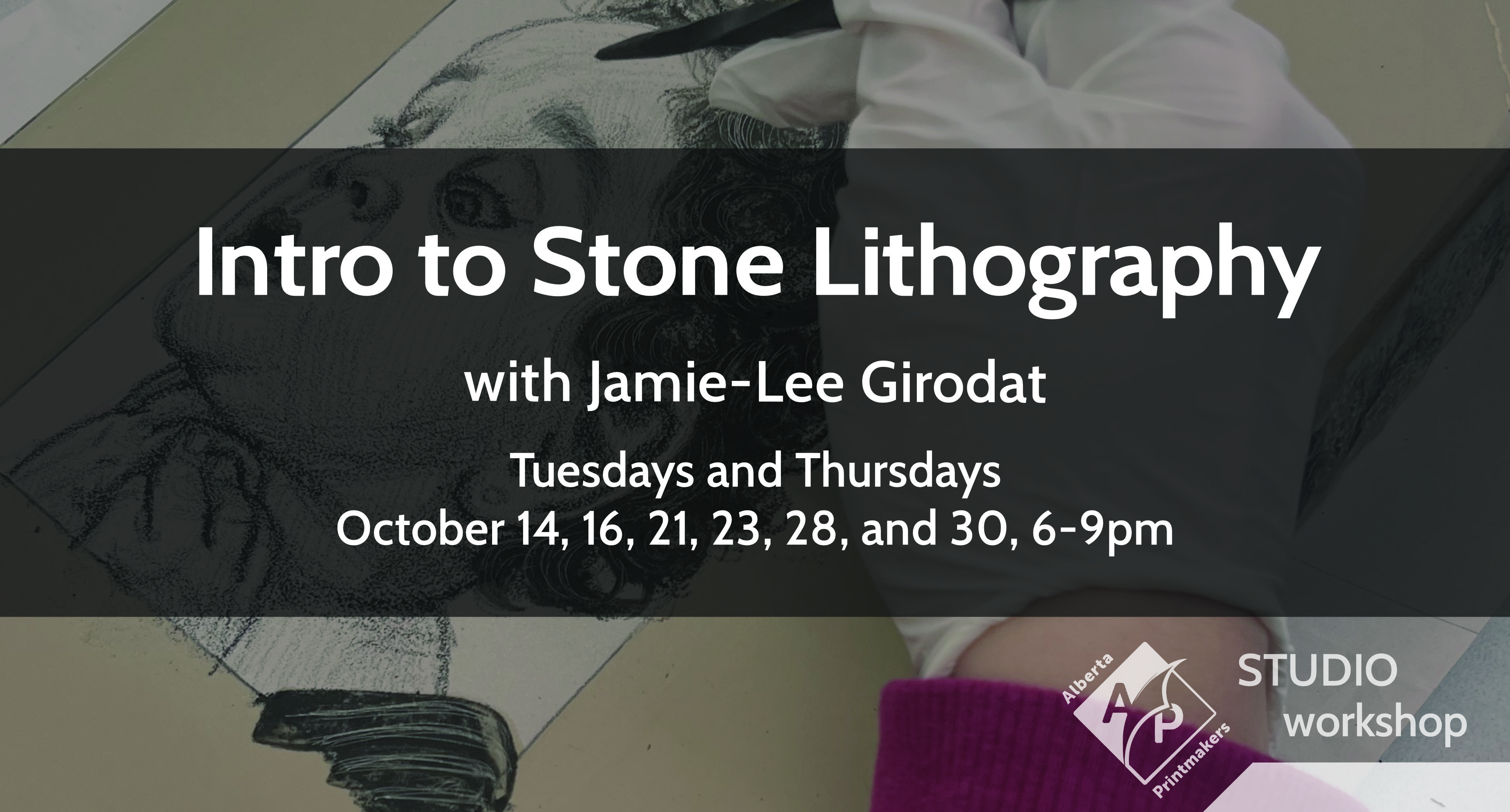 Let us demystify stone lithography! A process that is more than 200 years old and uses an image drawn on a limestone to make hundreds of prints! In this process, an image is drawn using greasy materials. You can even use butter! The painterly marks achieved are unmatched to other techniques. Lucky for us, Alberta Printmakers is one of the few places in the province that offers lithography stones and equipment for use!