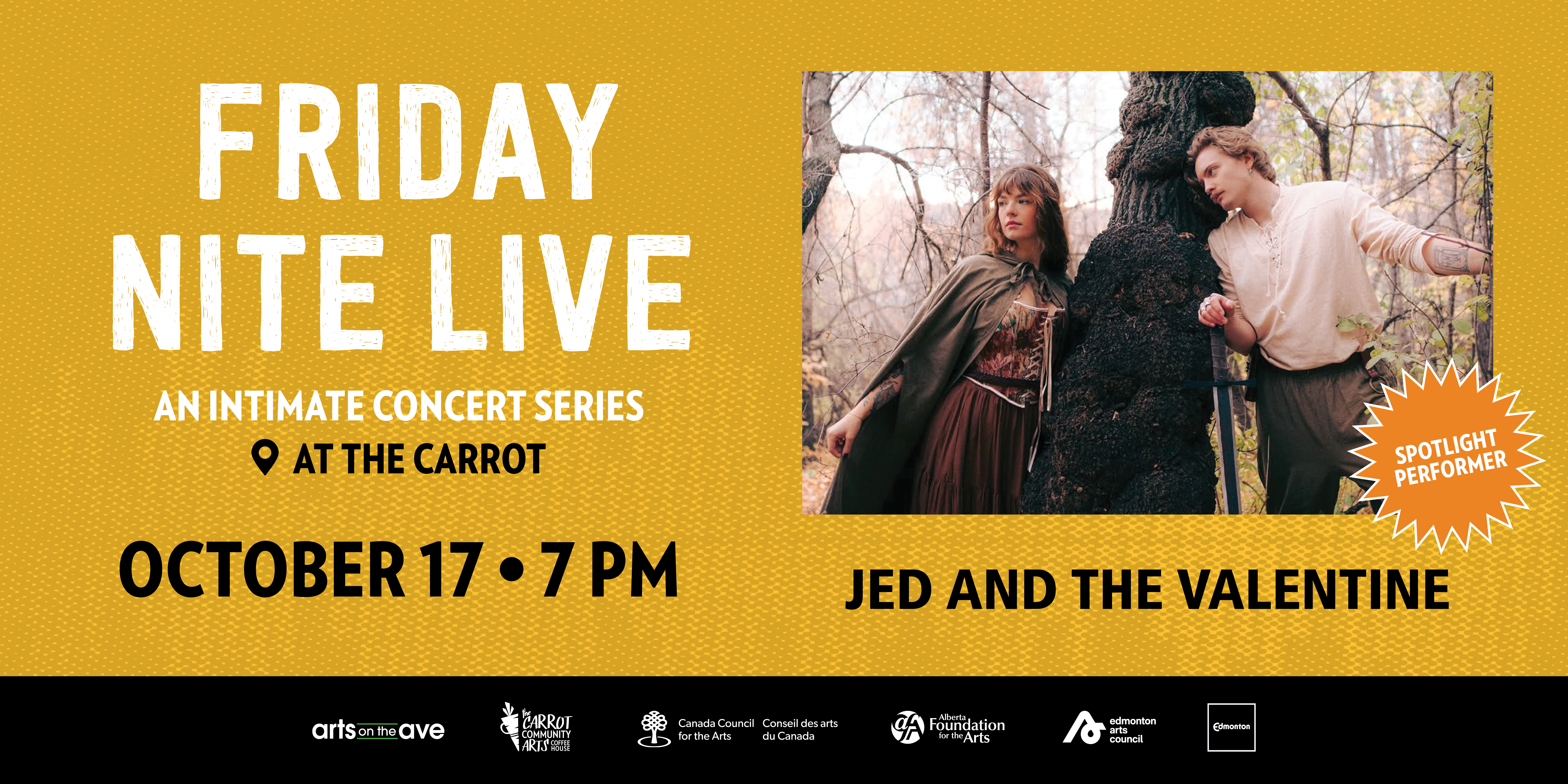 The Carrot Friday Nite Live presents Spotlight performer: Jed and the Valentine – October 17
