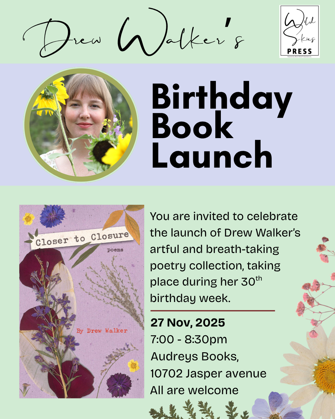 You are invited to celebrate the launch of Drew Walker’s artful and breath-taking poetry collection, taking place during her 30th birthday week.