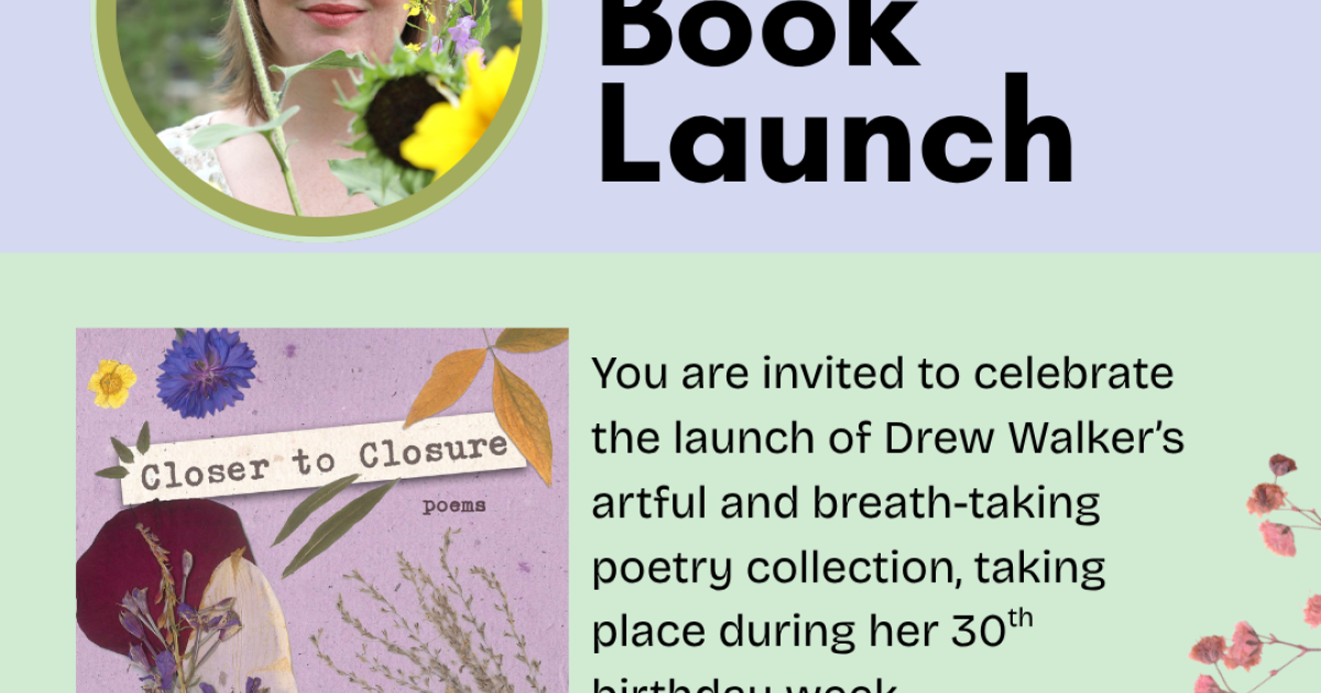 You are invited to celebrate the launch of Drew Walker’s artful and breath-taking poetry collection, taking place during her 30th birthday week.