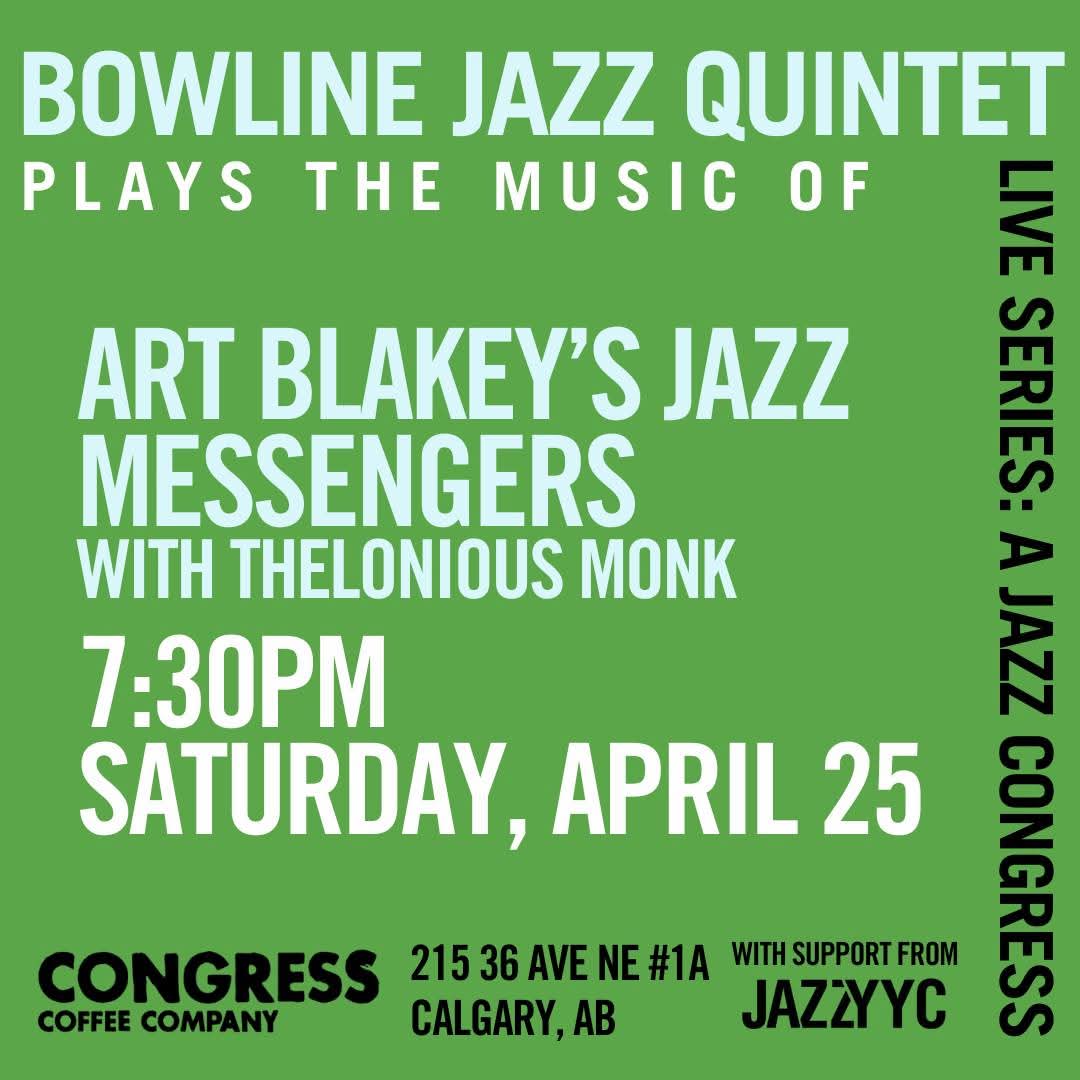 Nat Lazzarotto, Fraser Calhoun, and the Bowline Jazz Quartet have put together a low-key series at Congress Coffee Company playing jazz from and inspired by the 50s & 60s. Its a relaxed night that's very much about the room and the people in it. Come to listen or hang out and chat with friends.